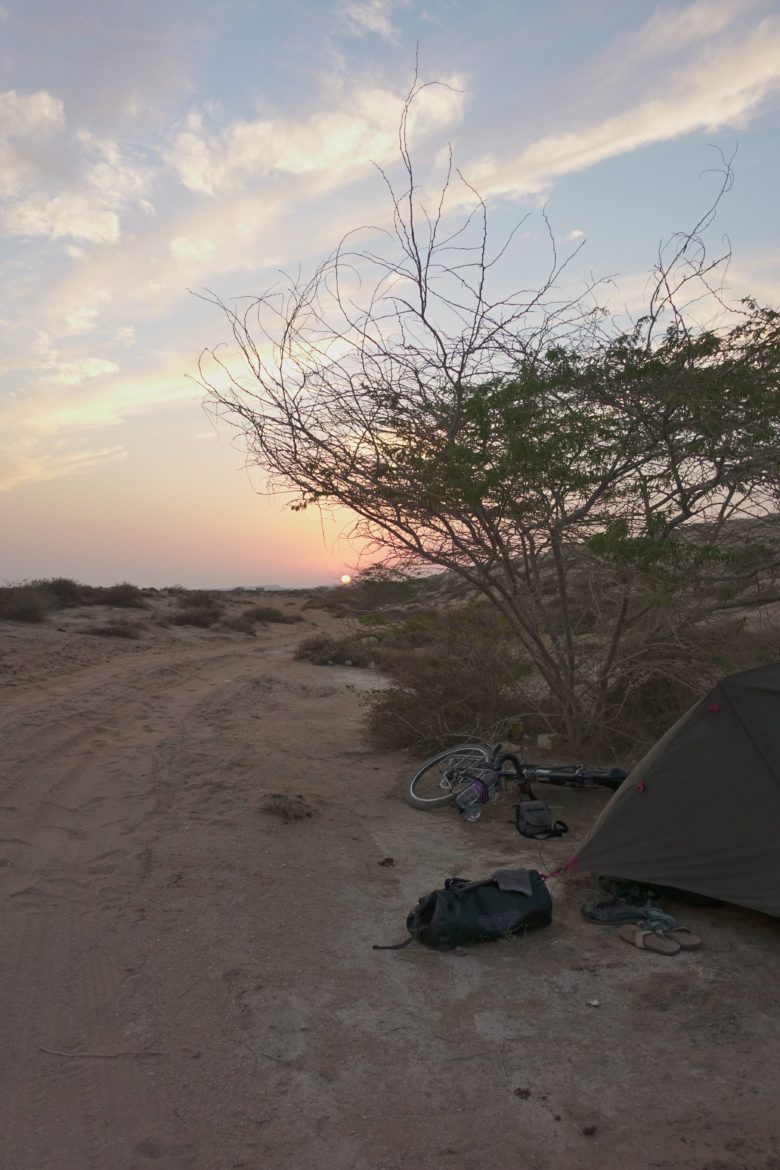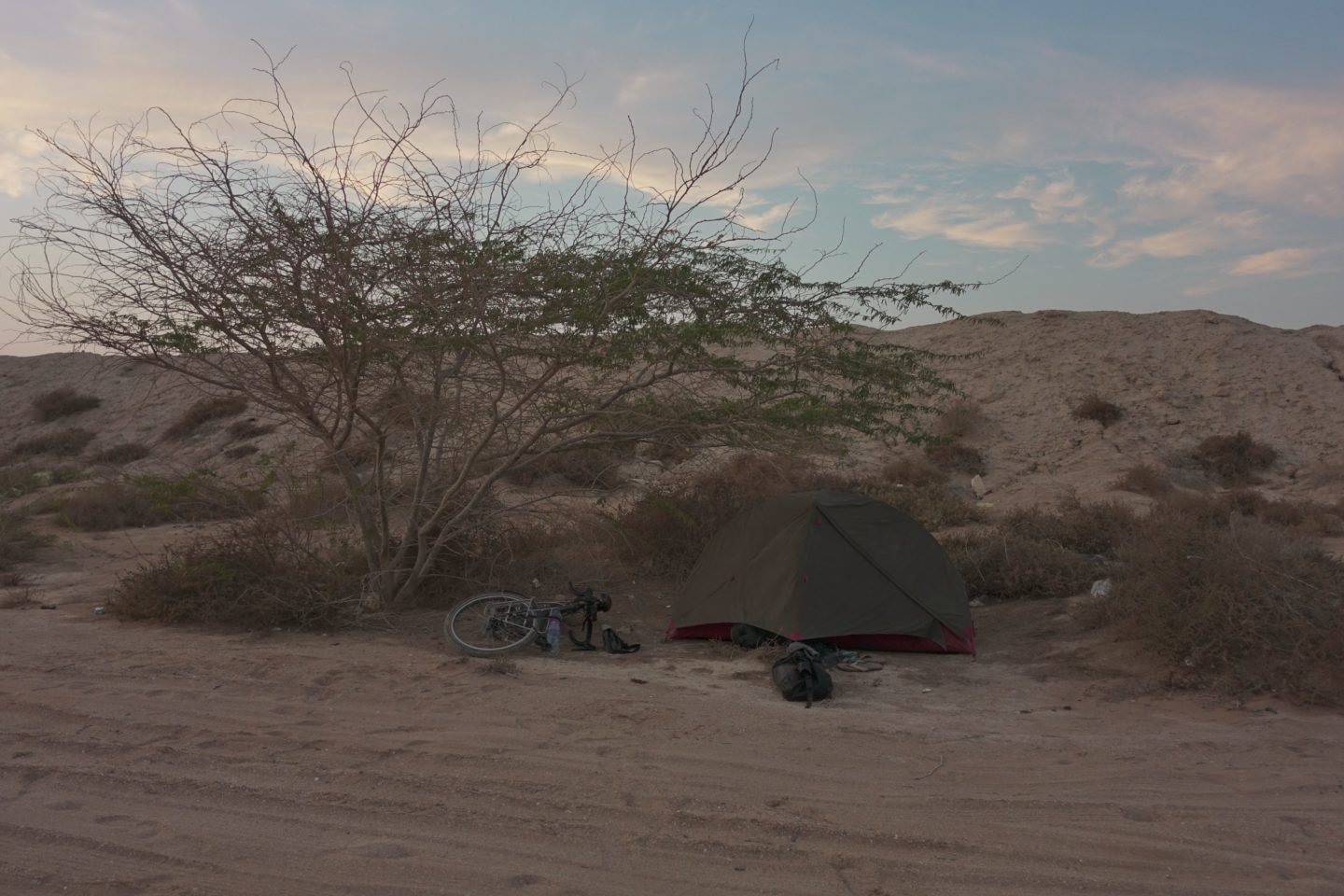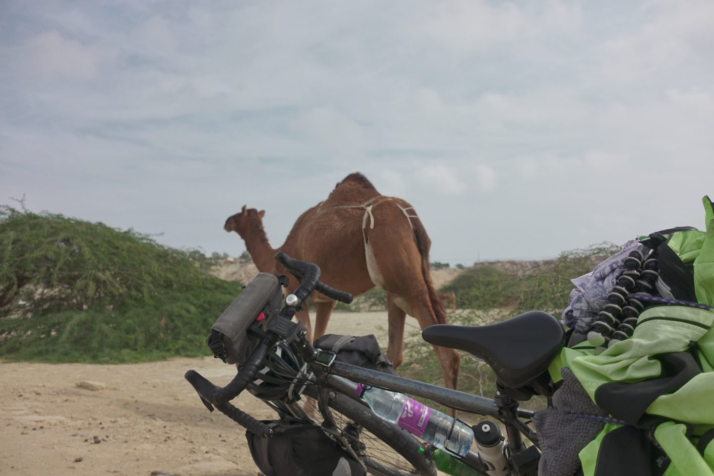 Next Day was just wandering always following the tailwind along the coastline. I meet Mr. P. a fellow Biketourero from Germany who passed me the opposite direction. We joked and shared stories of our journeys while a group of Dromedary came out of the bushes and crossed the surrounding street. Mr. P. went on to catch his ferry to Dubai and I followed the wind.