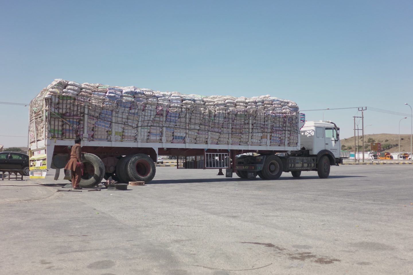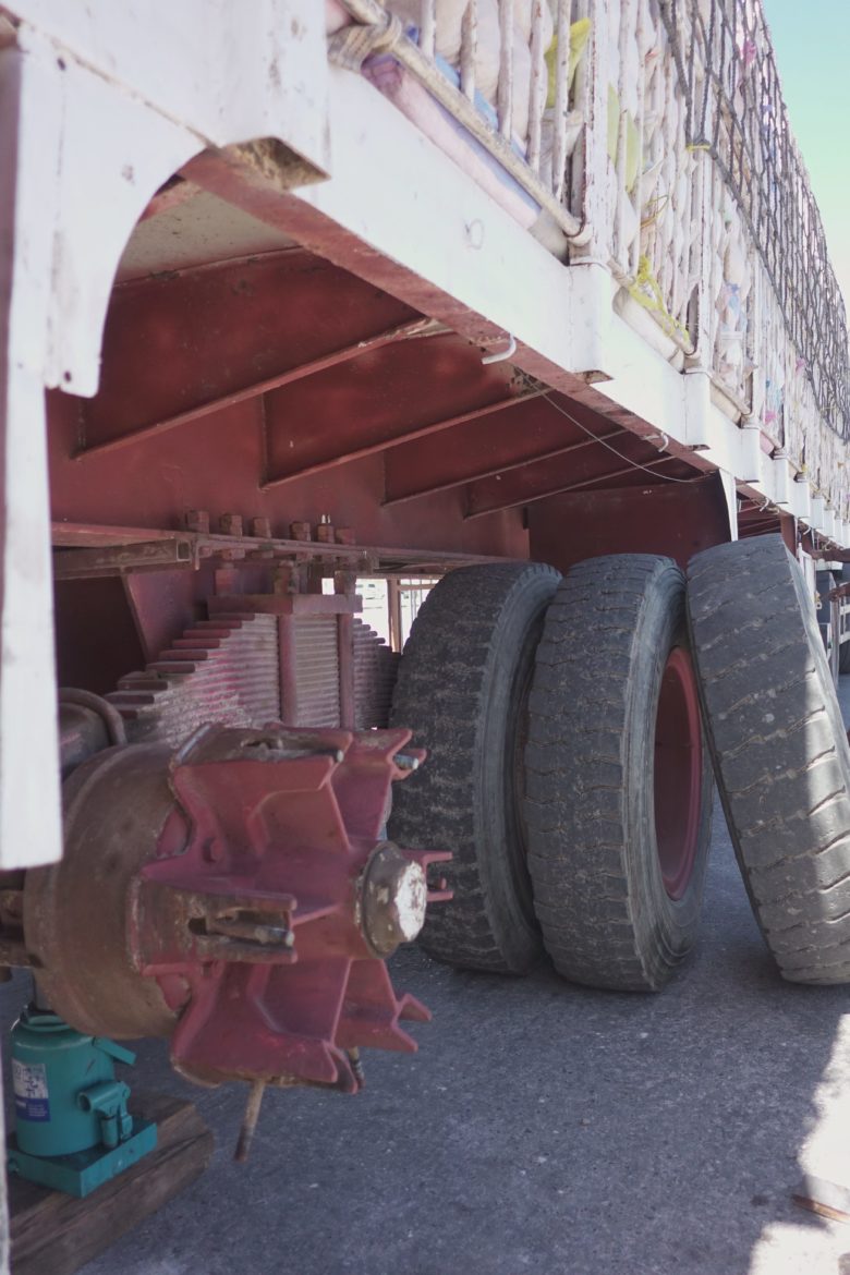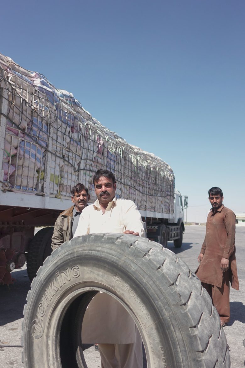 Outside on the parking lot I watched some Pakistani changing a back tire of a fully hand loaded Trailer. How other people solve problems in a different and creative way is always very interesting to me. I went over to take a closer look.