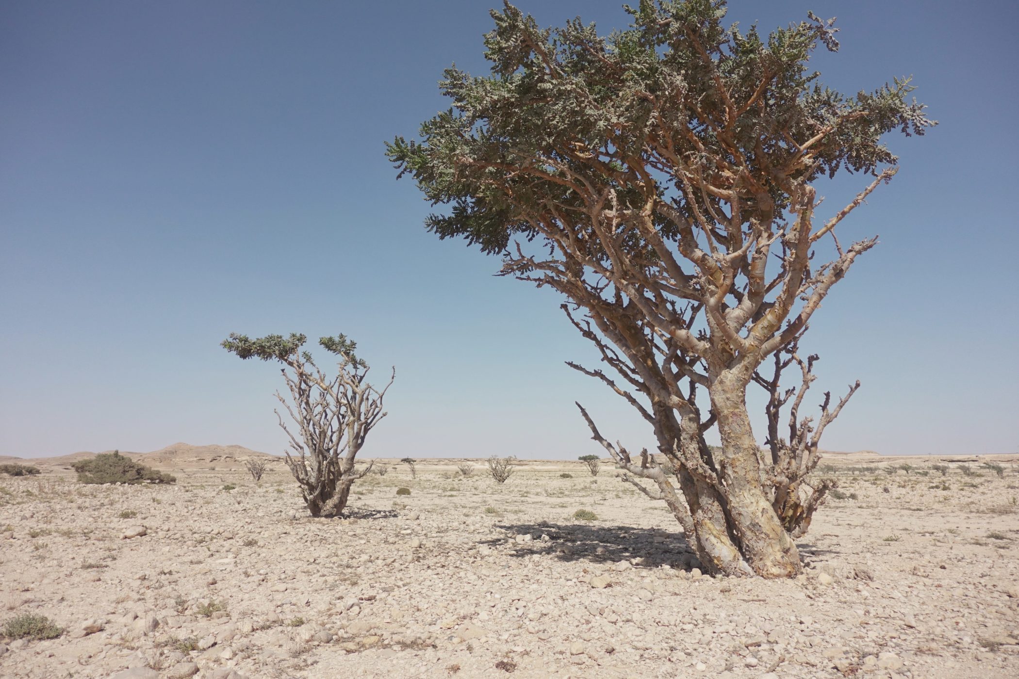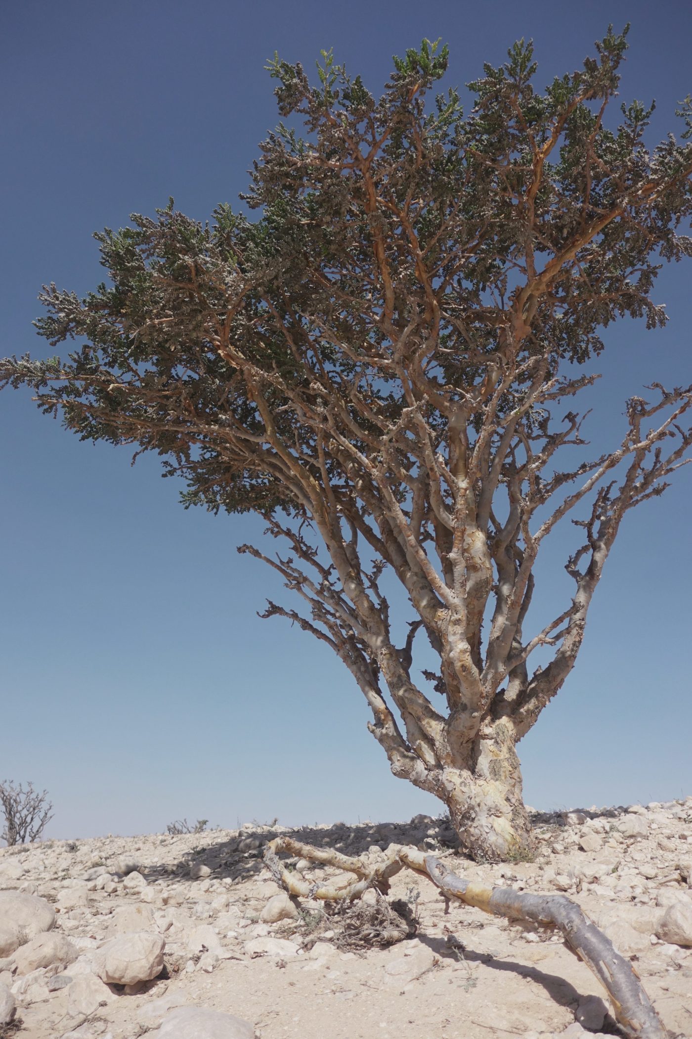 Frankincense is the resin from the Boswellia trees. It looks like the tree is bleeding out of the slashed bark and turning from clear to milk white by harden on the air. Brutal to see the trees get tapped two to three times a year. Unusual of the Bsowellia tree is their ability to grow in harsh environments I saw them on mountains, or growing on top of a solid rock. Frankincense also known in Arabic as al-lubān or olibanum. Popular from old references, it was one of the offerings to the infant Jesus beside Myrrh and Gold. Christian Churches using it in their rituals and made me feel like being in a church whenever I smell the unique smoke.